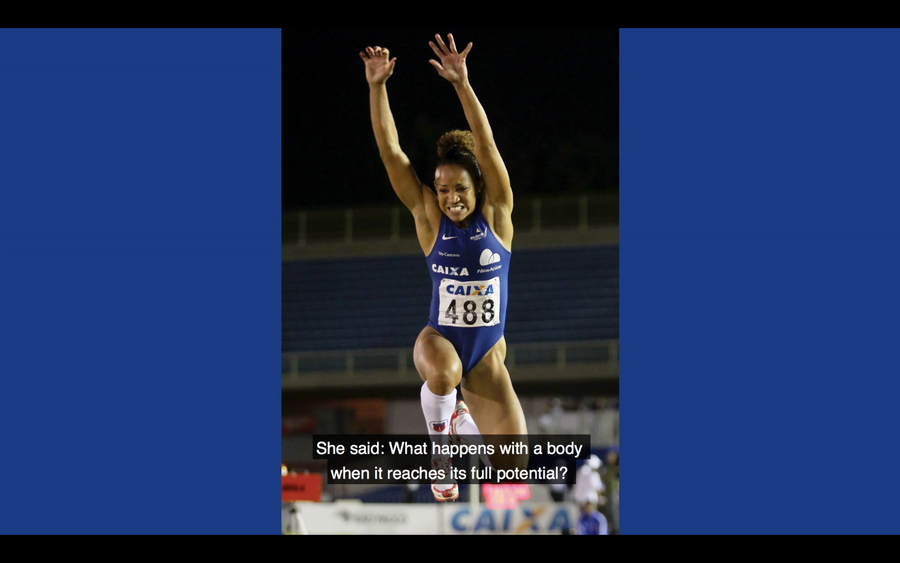 3-channel video installation, loop, monitors, tripods, headphones, steel, gym mat, Pilates ball